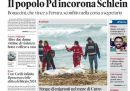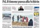 La notizia principale in apertura su quasi tutti i giornali di oggi è il naufragio di ieri mattina di un’imbarcazione che trasportava migranti proveniente dalla Turchia davanti alla costa ionica calabrese, naufragio nel quale sono morte almeno 59 persone mentre molte sono ancora disperse. L’altra notizia di ieri, in apertura su qualche giornale, è la vittoria nelle primarie del Partito Democratico di Elly Schlein, che diventa la nuova segretaria del partito, mentre Libero apre sull’indagine sulla sospetta corruzione al Parlamento europeo e il Messaggero intervista il ministro dell’Agricoltura Lollobrigida. I giornali sportivi si occupano dei risultati della domenica in Serie A, con la sconfitta dell’Inter raggiunta al secondo posto dal Milan che ha battuto l’Atalanta.