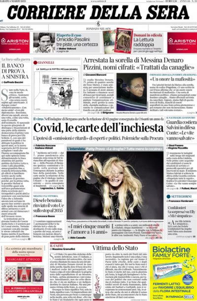 Ci sono notizie diverse in apertura sui giornali di oggi: alcuni si occupano delle indagini sulle responsabilità dei ritardi nel soccorso all’imbarcazione di migranti naufragata domenica scorsa sulla costa calabrese ionica, altri titolano sul rinvio della decisione sul blocco alla vendita di auto nuove a benzina e diesel nell’Unione Europea a partire dal 2035, altri ancora aprono sulla manifestazione di oggi a Firenze in difesa della scuola e della Costituzione indetta dopo l’aggressione fascista di due settimane fa a due studenti davanti a un liceo. Il Fatto e la Verità seguono l’indagine della procura di Bergamo sulla pandemia, il Corriere della Sera apre sull’arresto della sorella di Matteo Messina Denaro, mentre i giornali sportivi commentano la vittoria della Lazio sul Napoli nell’anticipo della Serie A.
