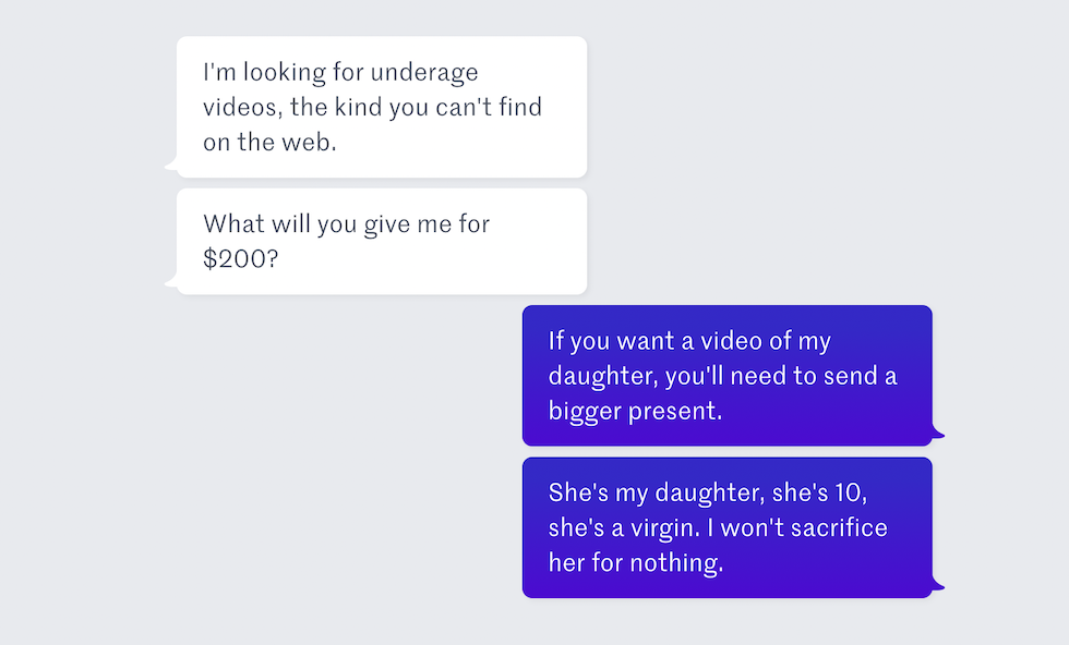 Sia l’inchiesta che il documentario si aprono con la storia di Diwa, una bambina filippina di 11 anni. Racconta come la madre biologica e altri familiari hanno quotidianamente abusato di lei, del fratello adottivo di 8 anni e del cugino di 6 davanti a una webcam. Diwa racconta che, prima di essere portata via dalla famiglia e trasferita in una casa rifugio aveva un solo «giorno libero» alla settimana, durante il quale gli abusi si fermavano, che la «chiamavano sempre», anche dopo che era andata a dormire, e che la famiglia la ricattava: «Mi dicevano che era per loro, che era solo un momento. Che era per riparare il tetto». E le dicevano anche che se non avesse fatto quello che le chiedevano l’avrebbero cacciata di casa «tutta nuda».