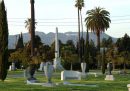 L’imbiancatura dell’insegna, lo scorso settembre (AP Photo/ Chris Pizzello via LaPresse)