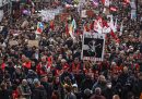 Giovedì in molte città francesi ci sono state nuove grandi proteste contro la contestata riforma delle pensioni voluta dal presidente Emmanuel Macron e approvata una settimana fa senza voto parlamentare. La manifestazione più partecipata della giornata si è tenuta a Parigi: secondo i sindacati (le cui stime sono solitamente più alte di quelle delle autorità) si sarebbero riunite a protestare fino a 800mila persone, in una delle manifestazioni più grandi da quando si è cominciato a parlare della riforma delle pensioni.