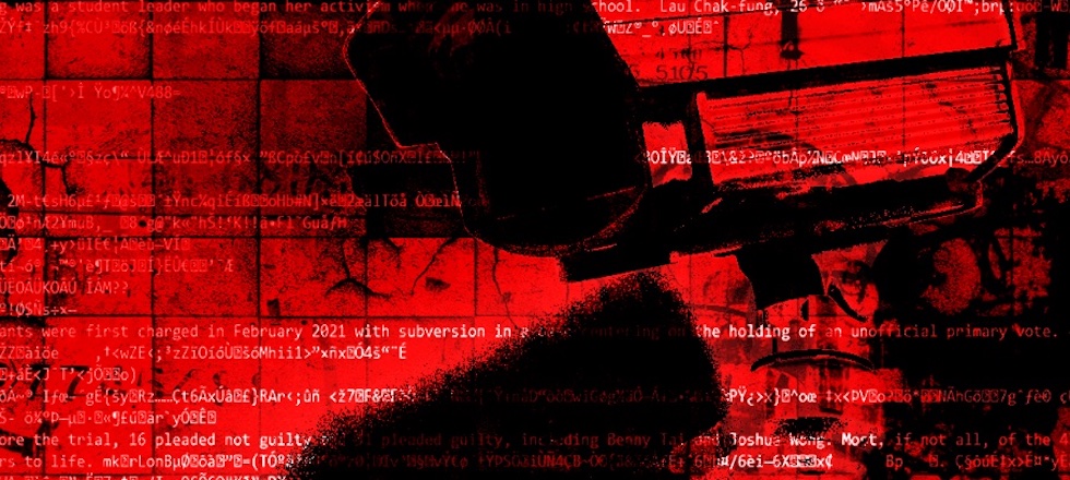 Riproduceva un video di 24 secondi in rosso e nero che mostrava una telecamera di sorveglianza che si muoveva a destra e a sinistra, interrotta da alcuni brevissimi flash in cui venivano mostrati graffiti a favore delle proteste e i nomi di dissidenti politici arrestati: i flash e le scritte erano praticamente invisibili a occhio nudo, ma leggibili nelle fotografie fatte all’opera.