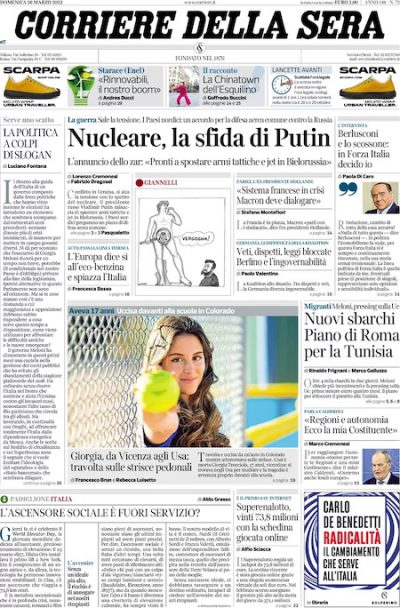 Le prime pagine di domenica 26 marzo 2023