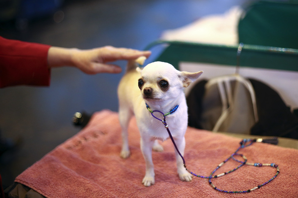 Un chihuahua durante una mostra di razze canine a Birmingham, nel Regno Unito, nel 2015 (Carl Court/Getty Images, LaPresse)