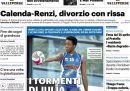 Ci sono notizie diverse in apertura sui giornali di oggi: alcuni esaminano più nel dettaglio i contenuti del Documento di Economia e Finanza approvato dal Consiglio dei ministri, altri titolano sulla rinuncia di Azione e Italia Viva a formare un partito unico per le tensioni fra i due partiti e soprattutto fra i due leader Calenda e Renzi. Il Corriere della Sera apre sull’arresto di una persona accusata di aver diffuso i documenti riservati dell’intelligence degli Stati Uniti, il Giornale e il Riformista si occupano della discussione nella maggioranza sul decreto sull’immigrazione, Libero e Domani titolano sulla decisione di La7 di sospendere il programma condotto da Massimo Giletti, e i giornali sportivi commentano la vittoria della Juventus nell’andata dei quarti di finale di Europa League.