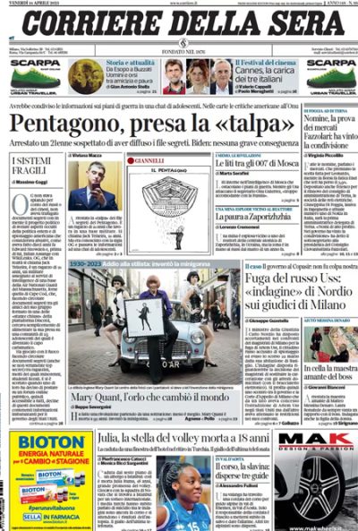 Le prime pagine di venerdì 14 aprile 2023