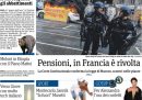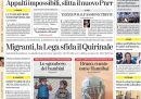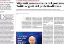 I giornali di oggi si occupano in apertura di notizie diverse: alcuni titolano sull’emendamento presentato al Senato dalla maggioranza sul “decreto Cutro” sull’immigrazione, che restringe molto la possibilità di richiedere la protezione speciale, per cui qualche giornale parla di ritorno ai “decreti Salvini” di quando il leader della Lega era ministro dell’Interno, altri aprono sull’approvazione da parte della Corte Costituzionale francese della riforma delle pensioni e sulle proteste nel paese. Repubblica e il Messaggero si occupano invece delle indagini sull’evasione e la fuga dall’Italia dell’imprenditore russo Artem Uss, la Stampa dei ritardi del PNRR, il Fatto va alla ricerca di una foto con Berlusconi e il boss mafioso Graviano, e la Verità continua imperterrita la sua campagna contro le restrizioni decise per contrastare la diffusione della pandemia negli ultimi anni.