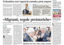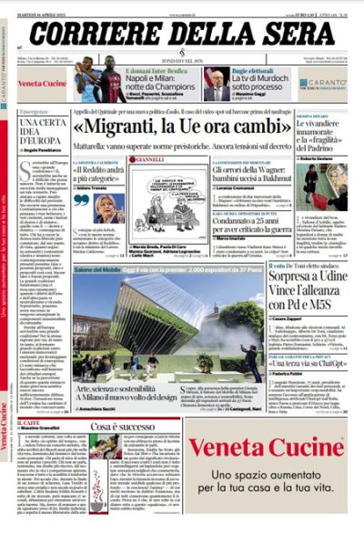 La maggior parte dei giornali di oggi si occupa in apertura di notizie legate al tema dell’immigrazione, con le critiche dell’opposizione all’intenzione del governo di abolire la protezione speciale per i migranti che arrivano in Italia e le parole del presidente della Repubblica Mattarella che durante la sua visita in Polonia ha sollecitato l’Unione Europea a modificare le regole sull’accoglienza. La Stampa apre invece con un’intervista al presidente dell’INPS Tridico sul contributo dei migranti ai conti dell’ente, il Fatto titola sulla decisione del governo di revocare il divieto di vendere armi agli Emirati Arabi Uniti, Domani si occupa della fuga dagli arresti domiciliari in Italia dell’imprenditore russo Artem Uss, e i giornali sportivi presentano il ritorno dei quarti di finale di Champions League fra Napoli e Milan in programma stasera.