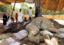 Noor Jehan è un’elefantessa di 17 anni dello zoo di Karachi, in Pakistan: la settimana scorsa è caduta in uno stagno e da allora le sue condizioni di salute – che erano già problematiche e avevano allertato organizzazioni internazionali preoccupate di garantirle una migliore qualità della vita – sono diventate critiche. Per questo motivo nella raccolta degli animali fotografati in settimana la si vede sdraiata su un cumulo di sabbia all’interno del suo recinto, assistita da custodi e veterinari.