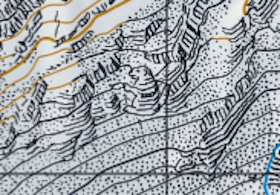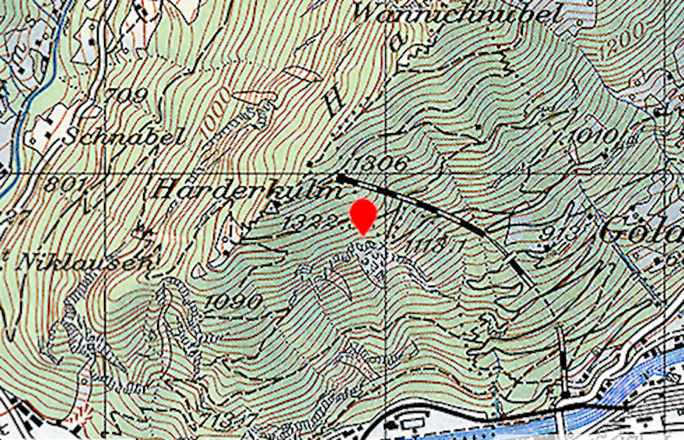 È più comprensibile il disegno del volto di un uomo nella zona nordoccidentale della città di Interlaken, nella regione montuosa dell’Oberland Bernese, nella Svizzera centrale. Friedrich Siegfried, il cartografo che lo disegnò sulla carta numero 254, decise di indicare in questo modo una conformazione rocciosa conosciuta come Hardermannli, che ricorda appunto un volto. Secondo una leggenda locale, Hardermannli era un monaco che venne trasformato in pietra per punizione, dopo che aveva fatto morire una ragazza inseguendola e facendola cadere dalla montagna.