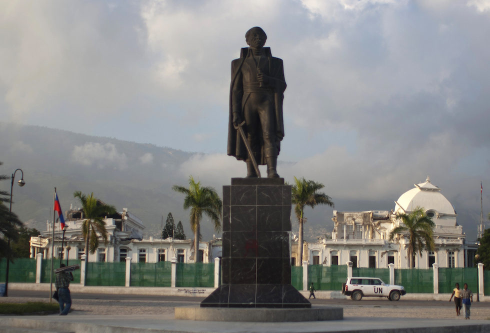 Una statua di Toussaint Louverture di fronte al Palazzo Nazionale di Port-au-Prince (AP Photo/Dieu Nalio Chery)