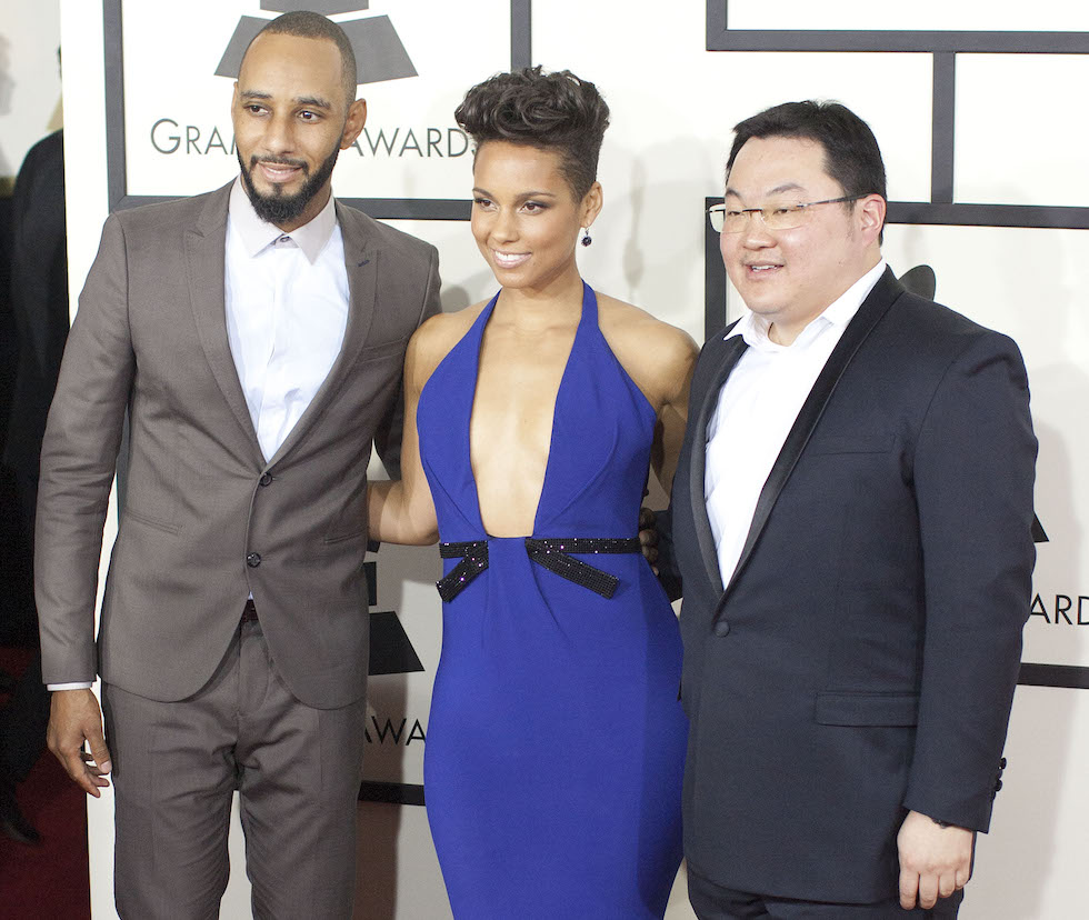 Jho Low (a destra) alla cerimonia dei Grammy nel 2014 con Alicia Keys (Prensa Internacional/ZUMAPRESS)