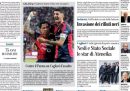 I risultati dei ballottaggi per le elezioni amministrative e del primo turno di quelle in Sardegna e in Sicilia, con la netta affermazione del centrodestra che ha vinto in quasi tutte le città più grandi (con l’eccezione di Vicenza, dove ha vinto il candidato di centrosinistra), sono la notizia di apertura su tutte le prime pagine di oggi. Le altre notizie principali sono gli scontri in Kosovo fra persone di etnia serba e albanese nei quali sono stati feriti degli alpini italiani che facevano parte di un contingente NATO nel paese, le elezioni anticipate decise dal primo ministro Sanchez in Spagna, e il ferimento di una professoressa da parte di uno studente in una scuola superiore di Abbiategrasso, mentre i giornali sportivi si occupano della richiesta di patteggiamento della Juventus che verrà esaminata oggi nel processo sulle irregolarità sugli stipendi.
