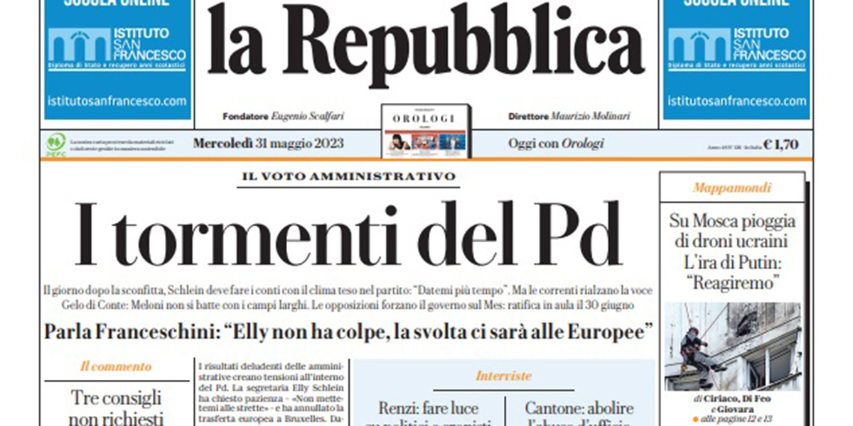 La discussione nel PD sulle elezioni amministrative, l'attacco con droni su Mosca, e la visita di Mattarella in Emilia-Romagna