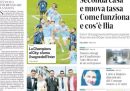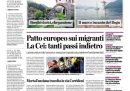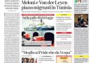 Le prime pagine dei giornali italian si dividono oggi tra varie notizie: alcuni parlano della nuova visita in Tunisia della presidente del Consiglio, Giorgia Meloni, questa volta accompagnata da Ursula von der Leyen, presidente della Commissione Europea. Altri parlano delle evoluzioni della vicenda riguardante i migranti fermati su una nave al largo di Napoli, altri ancora si occupano del Roma Pride di sabato. Molti giornali dedicano inoltre spazio alla storia dei quattro bambini trovati nella giungla colombiana 40 giorni dopo un incidente aereo. La principale notizia di sport riguarda invece la finale di Champions League vinta dal Manchester City contro l’Inter.