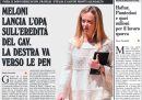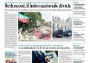È sempre la morte di Silvio Berlusconi la notizia che occupa quasi interamente tutte le prime pagine, con il suo funerale che si terrà oggi pomeriggio a Milano in Duomo; i titoli riguardano le polemiche sulla decisione del governo di proclamare il lutto nazionale per l’occasione e sulla sospensione dell’attività del parlamento, le ipotesi sul futuro politico di Forza Italia e su quello dell’azienda Fininvest. Le altre notizie che trovano spazio sulle prime pagine sono l’incriminazione di Donald Trump per i documenti riservati trovati nella sua villa, la morte dello scrittore Cormac McCarthy, l’andamento della controffensiva ucraina, le indagini sulla scomparsa di una bambina a Firenze, e la morte di Flavia Franzoni, la moglie di Romano Prodi.