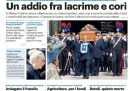 Su tutti i giornali di oggi la notizia di apertura è il funerale di Silvio Berlusconi, che si è svolto ieri pomeriggio nel Duomo di Milano alla presenza delle principali cariche dello Stato. Fanno eccezione Repubblica, il Manifesto e l’Unità, che aprono invece sul naufragio di un barcone che trasportava persone migranti al largo del Peloponneso, in Grecia, nel quale secondo le prime notizie sarebbero morte almeno 78 persone, ma si teme che il numero delle vittime possa essere molto più alto.