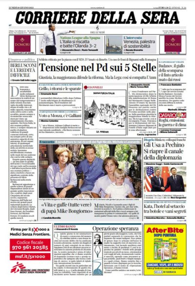 I giornali di oggi si occupano in apertura di notizie diverse: molti titolano sulle tensioni nel Partito Democratico dopo la partecipazione della segretaria Elly Schlein alla manifestazione di sabato del Movimento 5 Stelle e le polemiche sulle dichiarazioni di Beppe Grillo sulle “brigate di cittadinanza”, mentre qualche giornale segue ancora le notizie sul disegno di legge sulla giustizia approvato dal Consiglio dei ministri. La Stampa apre sulla mancanza di medici ospedalieri, il Messaggero si occupa degli aumenti delle pensioni previsti da luglio, e Domani apre sulla gestione familiare di molte grandi imprese italiane.