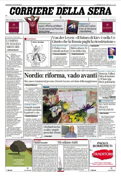 Le prime pagine di giovedì 22 giugno 2023
