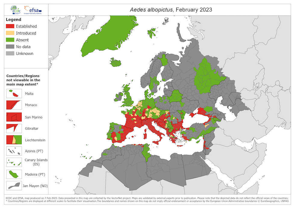 Il Centro europeo per la prevenzione e il controllo delle malattie (ECDC), l’agenzia indipendente dell’Unione Europea che controlla la comparsa e la diffusione di malattie infettive, ha aggiornato le proprie mappe sulla presenza delle diverse specie di zanzare in Europa segnalando la loro continua espansione, anche in regioni dove fino a qualche anno fa non erano presenti, e il conseguente rischio che aumentino le trasmissioni di malattie legate a questi insetti. «Potremmo vedere più casi ed eventualmente morti dovute a malattie come la dengue, la chikungunya e la febbre West Nile», ha detto Andrea Ammon, direttrice dell’ECDC.