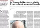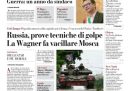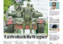 L’apertura di tutti i giornali di oggi è dedicata alla rivolta del gruppo paramilitare russo Wagner, guidata dal suo capo Yevgeny Prigozhin, contro il governo e l’esercito russo che ha portato all’occupazione della città di Rostov sul Don e all’avanzata verso Mosca di truppe e mezzi militari della milizia, prima che ieri sera il presidente bielorusso Lukashenko annunciasse di aver raggiunto un accordo con il presidente russo Putin e Prigozhin per fermare l’insurrezione del gruppo Wagner e offrirsi come garante per la sicurezza dei mercenari.