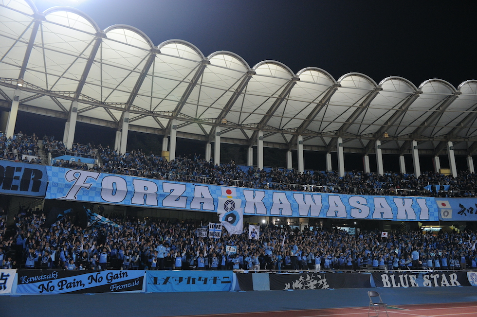 La curva dei tifosi del Kawasaki Frontale (Masashi Hara/Getty Images)