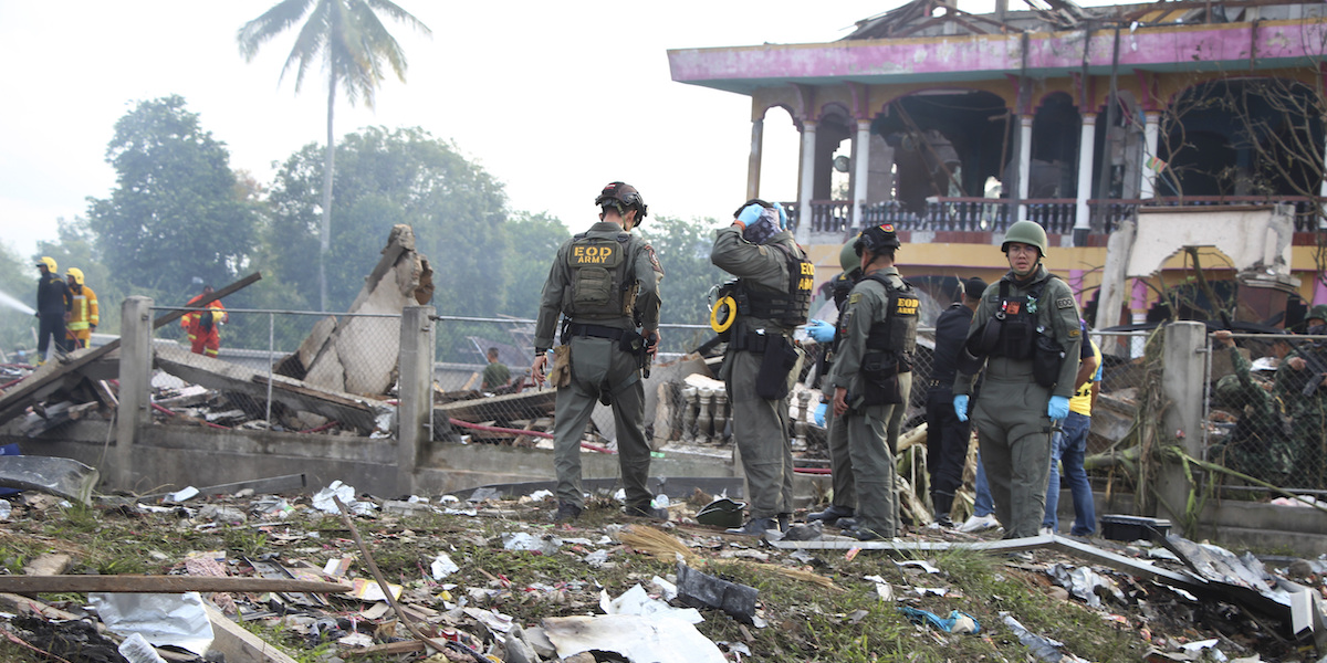 Almeno nove persone sono morte nell’esplosione di un magazzino di fuochi d’artificio in un mercato della provincia di Narathiwat, nel sud della Thailandia. L’esplosione è avvenuta a Su-ngai Kolok, vicino al confine con la Malesia, e secondo una prima ricostruzione delle autorità locali sarebbe stata provocata da un «errore tecnico» durante alcuni lavori edili nell’area. Nell’incidente sono rimaste ferite circa 115 persone.