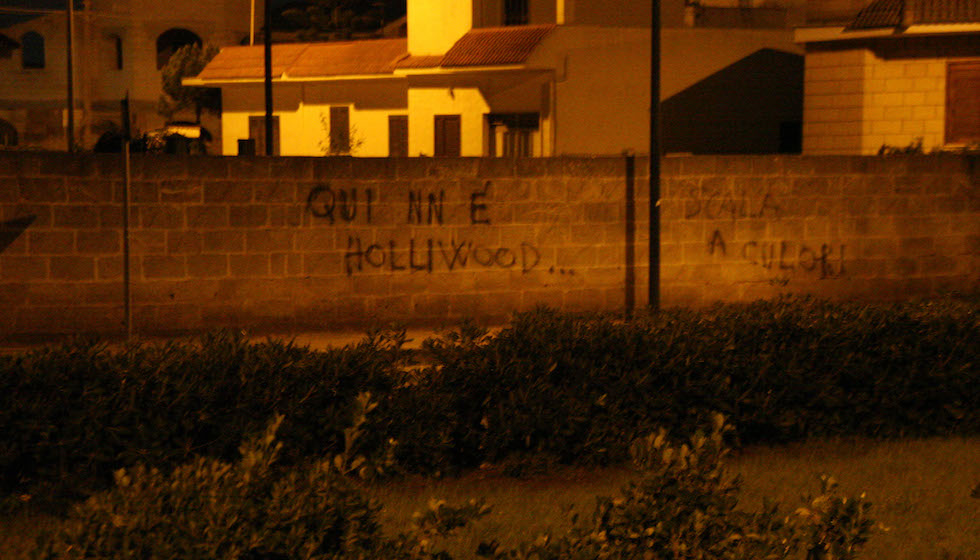 Un messaggio rivolto ai media e ai turisti su un muro in via Kennedy, nella periferia di Avetrana, il 23 ottobre 2010 (ANSA)