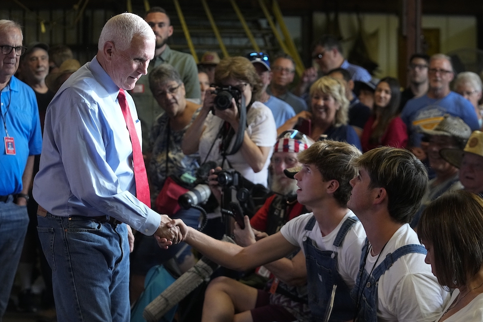 Un momento della campagna elettorale di Mike Pence (AP Photo/Darron Cummings)