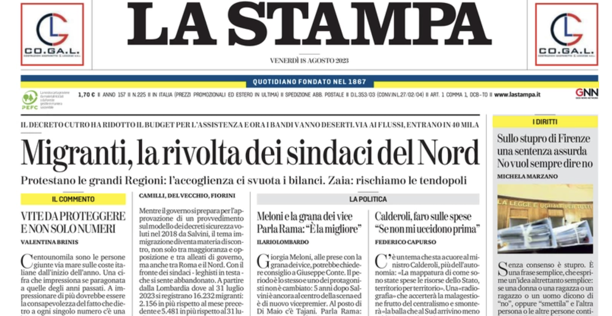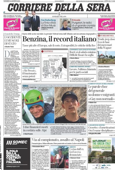 Le prime pagine di venerdì 18 agosto 2023