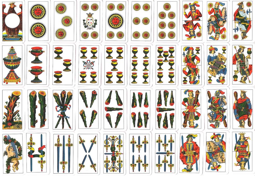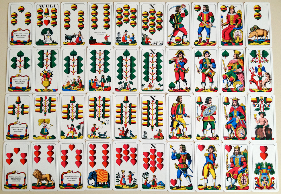 Di solito le carte da gioco sono una delle cose che finiscono nelle valigie per le vacanze estive. E se non ci finiscono spesso qualcuno se ne duole, almeno se le vacanze sono in gruppo. Oggi le carte più diffuse al mondo sono quelle francesi, cioè quelle che hanno come semi cuori, quadri, fiori e picche, ma in Italia continuano a essere diffuse molte altre varianti regionali con semi diversi, che tra simboli, figure e particolarità hanno qualche somiglianza, ma anche molte differenze.