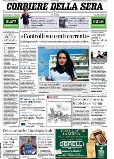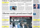 I quotidiani oggi aprono con notizie diverse. Repubblica parla delle critiche rivolte da alcuni esponenti della maggioranza al ministro della Difesa Guido Crosetto per i suoi commenti sul generale demansionato Roberto Vannacci, e dell’ultimo soccorso di migranti effettuato dalla Geo Barents, la nave di Medici senza frontiere. La Stampa si occupa delle discussioni interne al governo sui possibili tagli alla Sanità previsti nella prossima legge di bilancio e delle dichiarazioni della segretaria del Partito Democratico Elly Schlein sulla necessità di una legge e nuove misure per contrastare i femminicidi. Il Corriere della Sera apre con alcuni commenti del direttore dell’Agenzia delle Entrate Ernesto Ruffini sull’evasione fiscale.