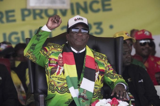 Il presidente dello Zimbabwe Emmerson Mnangagwa, Harare, 9 agosto 2023 (AP Photo/Tsvangirayi Mukwazhi)