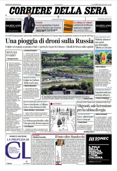 Le prime pagine di giovedì 31 agosto 2023