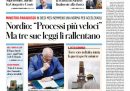 Sulla maggior parte di giornali di oggi l’apertura è dedicata al forum Ambrosetti a Cernobbio, con l’intervento del ministro dell’Economia Giorgetti che ha criticato nuovamente il superbonus edilizio al 110% per i suoi effetti sui conti pubblici, i giudizi sulla proposta del centrosinistra sul salario minimo e sull’attività del governo Meloni. Il Fatto critica il ministro della Giustizia Nordio per la lentezza dei processi, la Verità torna sulle parole dell’ex presidente del Consiglio Amato sulla strage di Ustica, e Libero titola sulla proposta del ministro delle Infrastrutture Salvini di riaprire all’utilizzo del nucleare. I giornali sportivi aprono sui risultati della domenica in Serie A, con le vittorie di Inter e Juventus.
