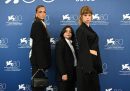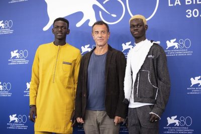 Nei giorni scorsi sono stati presentati gli ultimi due film italiani in concorso alla Mostra del cinema di Venezia: Io Capitano di Matteo Garrone, un film sulla storia di due ragazzi migranti dal Senegal verso l’Italia (tutto girato nella lingua wolof dei protagonisti e fatto seguendo il loro viaggio avventuroso dall’inizio alla fine), e Lubo di Giorgio Diritti, la storia di un uomo nomade del popolo Jenisch a cui vengono sottratti i figli nell’Europa della prima metà del ‘900. Da fotografare c’erano quindi, tra gli altri, Garrone, Diritti e i protagonisti dei loro film, Franz Rogowski, Seydou Sarr e Moustapha Fall.