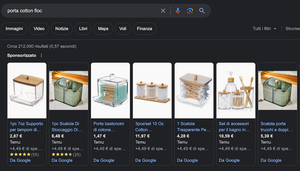 Temu ha anche avviato un fitto programma di sponsorizzazioni su Google ed è frequente che cercando un qualsiasi prodotto online i primi risultati sponsorizzati siano tutti suoi.