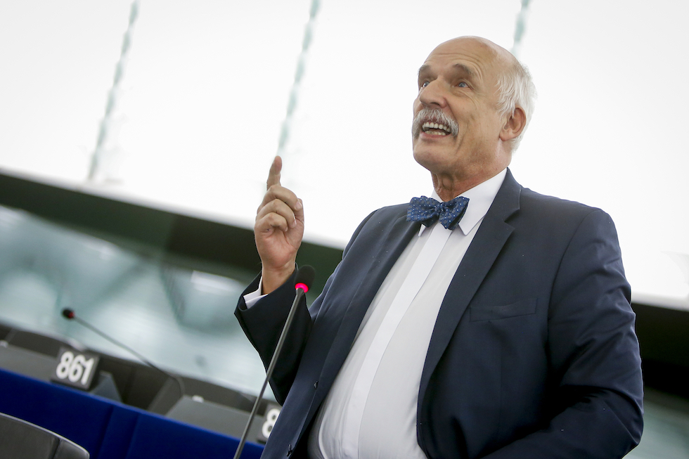 Janusz Korwin-Mikke durante un dibattito al Parlamento Europeo (Fred MARVAUX, © European Union 2016)