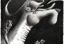 L’opera ha cominciato a ingrandirsi ulteriormente: quasi ogni animale fantastico del De Bestiarum Naturis porta ad altri disegni derivati, a poesie o racconti, a testi “scientifici”. Non sono sicuro di riuscire a controllare tutto, anzi sono abbastanza certo che il progetto mi stia già sfuggendo dalle mani, che non avrò abbastanza tempo per fare tutto quello che vorrei fare o abbastanza energie anche solo per finire le opere cominciate. Eppure, continuo a disegnare, e continuo – anche adesso che sto scrivendo – a immaginare nuove bestie da inserire nell’opera.