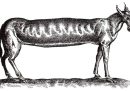 Il disegno della bestia 972 ne è un preciso esempio: è ispirata a un’incisione cinquecentesca di Edward Topsell in cui tra gli animali presenti nell’Inghilterra di allora compare un “Getuliano”, cioè un cane proveniente più o meno dal Marocco del Sud. Non è stato difficile immaginare il tipo di viaggio per mare che il Getuliano poteva aver compiuto, magari accompagnando un umano, dal sud al nord del mondo, dal deserto all’acqua, dalla povertà a una nuova vita. Seguendo questa tragica analogia, ho scritto un intero poema tragicomico in ottave, che poi ho editato nel primo libro della casa editrice del De Bestiarum Naturis: la Trilogia di Crollando. A partire da questo testo, ho poi disegnato una ventina di illustrazioni, le Tavole del Crollando, che costituiscono, per ora, l’ultima espansione di questo animale.