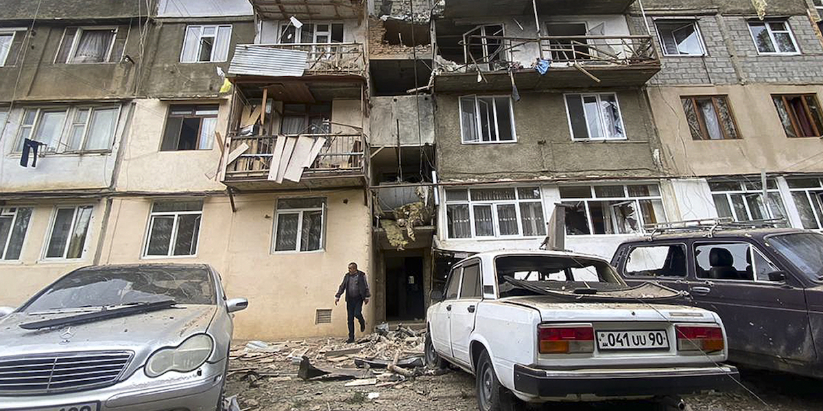 Il Nagorno Karabakh è un territorio di circa 11mila chilometri quadrati che si trova all’interno dell’Azerbaijan ma la cui popolazione è a maggioranza armena e cristiana (la religione più comune in Azerbaijan è l’islam sciita). Nel 1988 dichiarò la sua indipendenza, sostenuto dall’Armenia: seguirono anni di scontri etnici molto violenti, fino alla prima guerra tra Armenia e Azerbaijan, che cominciò nel 1992, finì nel 1994 e provocò almeno 30mila morti. Quella prima guerra fu vinta dall’Armenia, che occupò buona parte del territorio del Nagorno Karabakh e vi instaurò un governo formalmente indipendente ma di fatto controllato dall’Armenia stessa. Agli occhi della comunità internazionale, il Nagorno Karabakh è sempre rimasto territorio dell’Azerbaijan.
