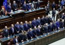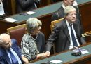 Martedì mattina si sono svolti i funerali di Giorgio Napolitano, l’ex presidente della Repubblica morto venerdì a 98 anni. Per la prima volta nella storia repubblicana la cerimonia si è tenuta a Palazzo Montecitorio, la sede della Camera dei deputati, nel centro di Roma: la prima parte all’esterno del Palazzo, mentre il rito vero e proprio è avvenuto all’interno e si è concluso poco dopo le 13. Le autorità presenti erano sedute sui posti dei parlamentari, mentre gli altri ospiti erano sulle tribune alle loro spalle. Il feretro è uscito dalla Camera intorno alle 13:30. L’intera cerimonia è stata proiettata su due maxischermi allestiti in piazza Montecitorio e nella vicina piazza Capranica.