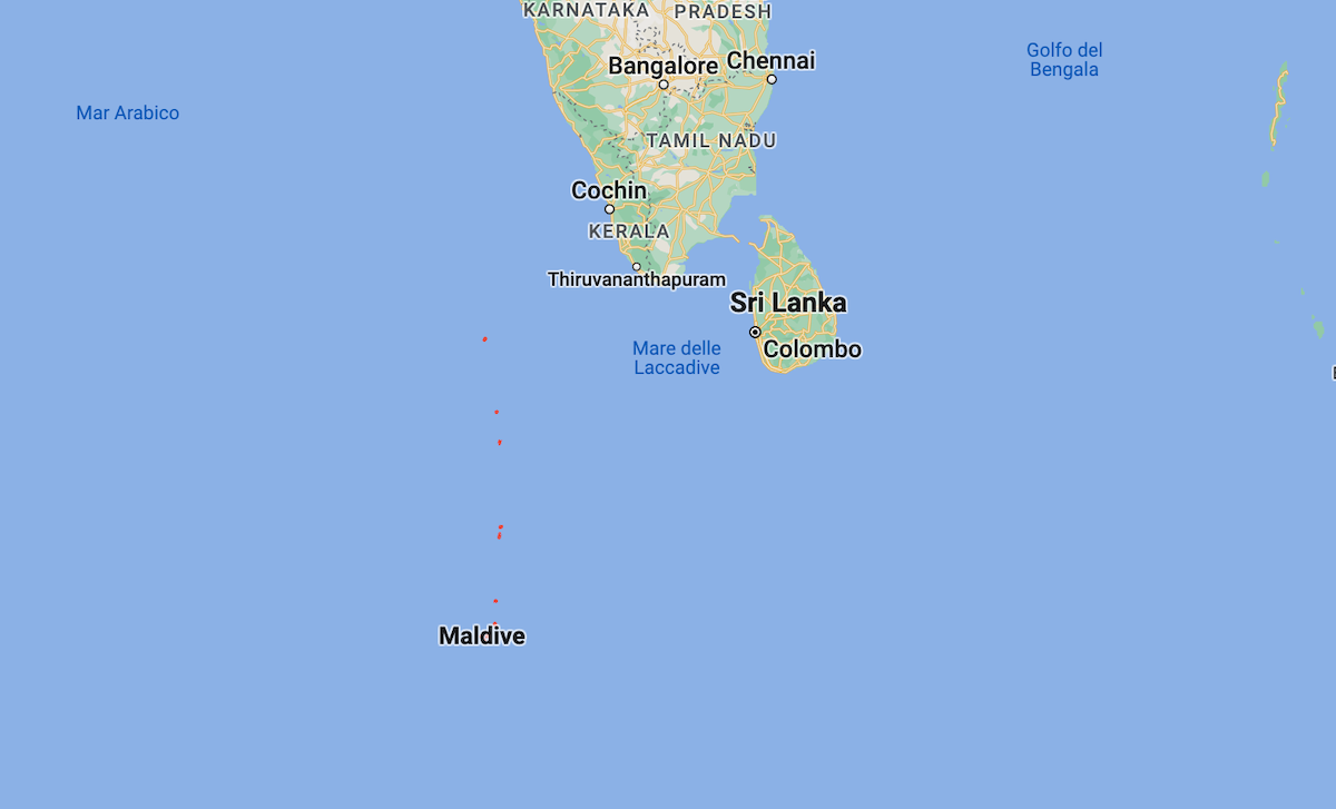 Le Maldive, evidenziate in rosso (Google Maps)