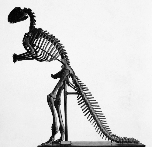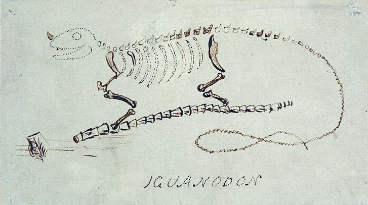 Qualche anno prima il medico e geologo britannico Gideon Algernon Mantell aveva trovato nel Sussex alcuni denti e altri resti fossili di uno strano animale preistorico. Aveva messo a confronto i reperti con gli animali contemporanei e si era persuaso di avere trovato l’equivalente di un’iguana, lunga però una trentina di metri. Usò le ossa di cui disponeva per ricomporre una sorta di puzzle, immaginò poi i pezzi mancanti e produsse un primo schizzo dell’animale. Lo chiamò Iguanodon, iguanodonte, cioè “denti di iguana”, visto che aveva fatto la scoperta grazie ai fossili di parte della bocca dell’animale.
