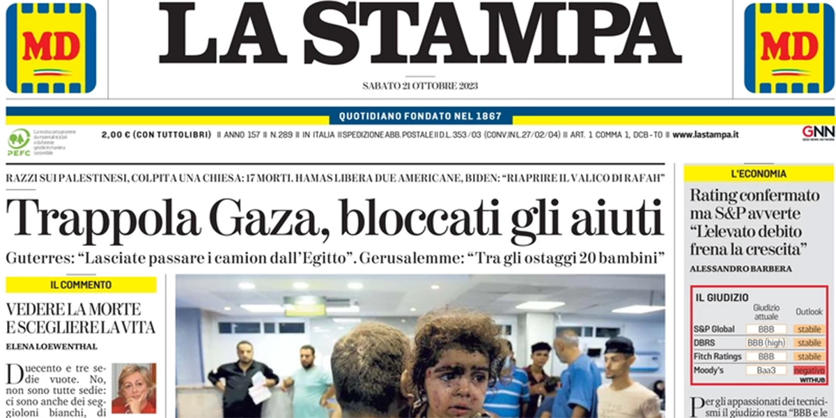Le prime pagine di sabato 21 ottobre 2023