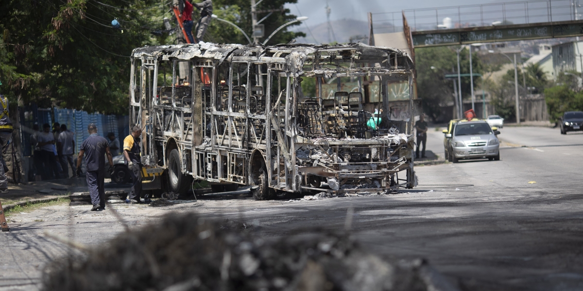 Una milizia paramilitare ha bruciato almeno 35 autobus, un vagone di un treno e quattro camion a Rio de Janeiro