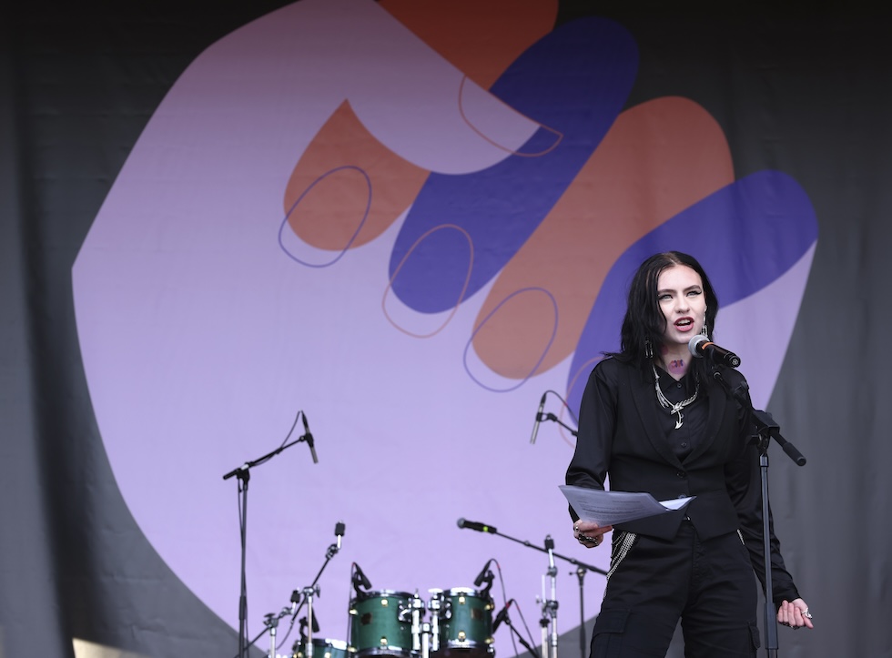 Urður Bartels, studente e una delle speaker alla manifestazione per lo sciopero, Reykjavik, 24 ottobre (AP Photo/Arni Torfason)