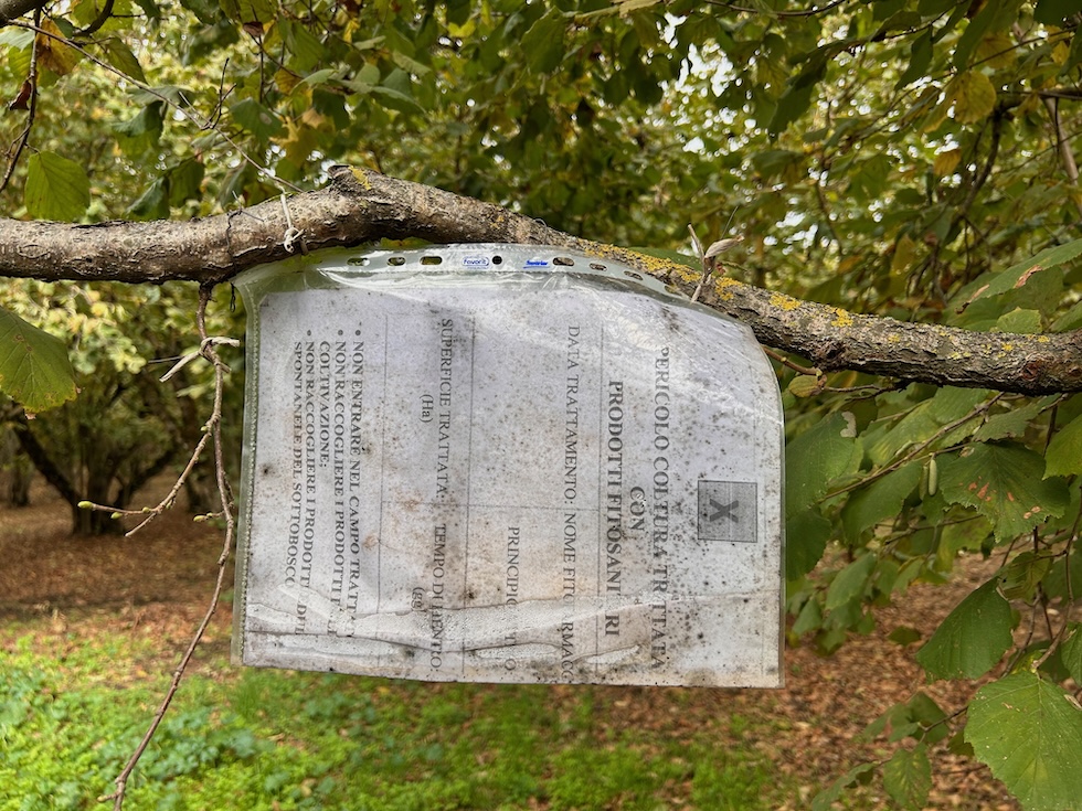 Le coltivazioni circondano per due terzi il lago di Vico e ne occupano l’intero bacino fino alla riva. All’inizio di novembre la raccolta era finita e per strada non si incontrava nessuno. I campi erano recintati e su alcuni alberi gli agricoltori avevano cartelli con l’indicazione dei trattamenti effettuati e dei pesticidi utilizzati.