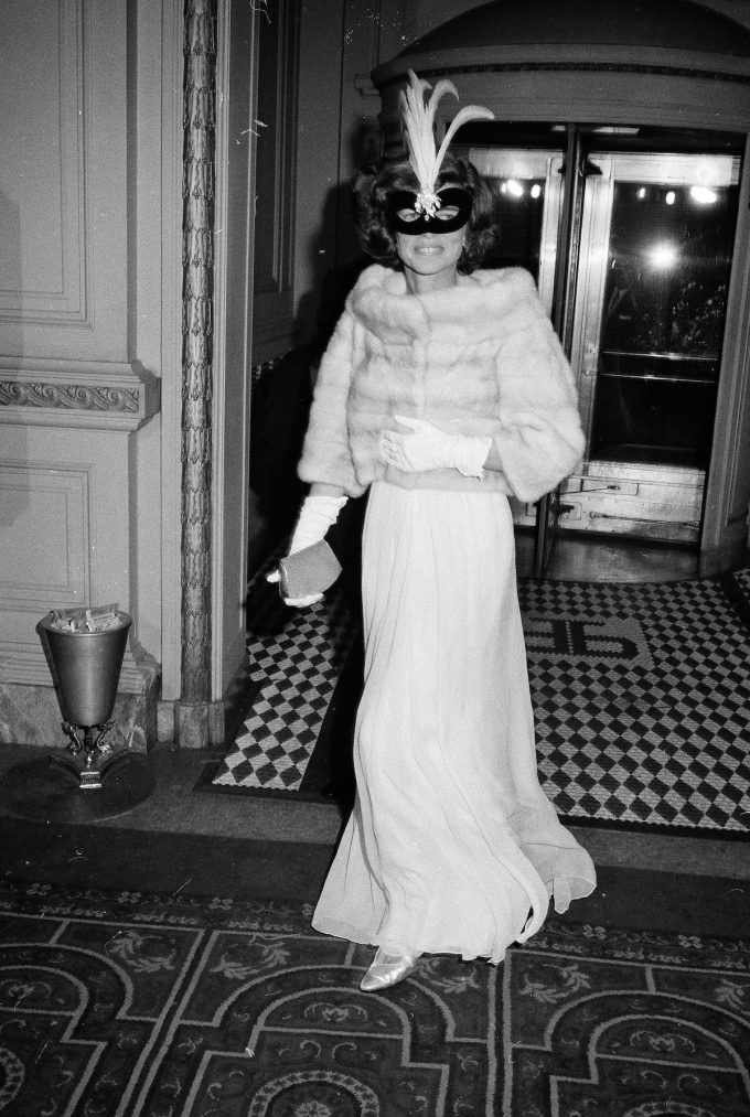 Eunice Kennedy Shriver, della famiglia Kennedy, arriva al ballo, New York, 28 novembre 1966 (AP Photo)