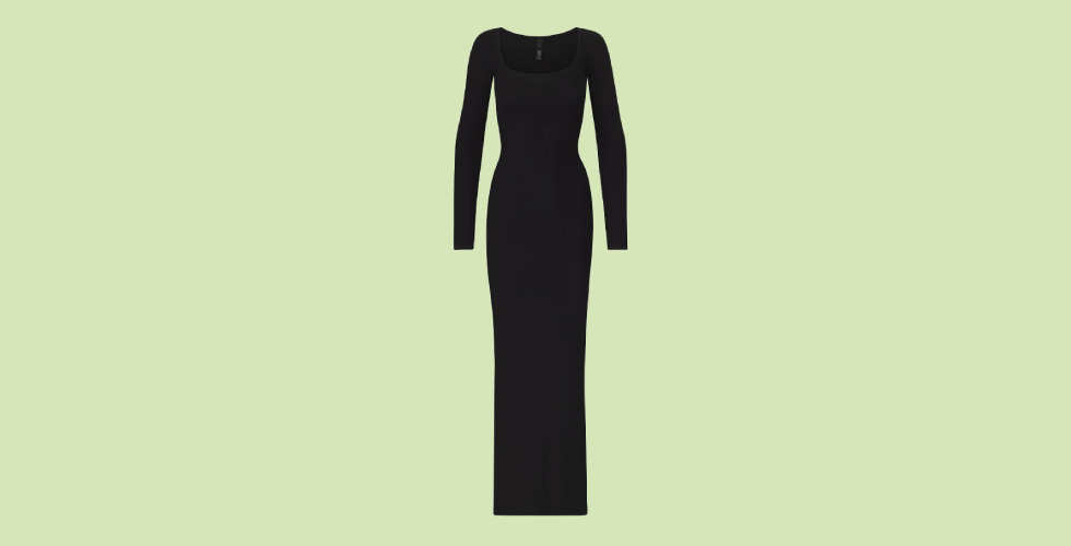 Recentemente abbiamo raccontato come Skims, il marchio di abbigliamento di Kim Kardashian, abbia cominciato vendendo biancheria intima contenitiva e nel giro di pochi anni abbia creato tutta una sua estetica arrivando a farsi apprezzare da un largo pubblico per la qualità e l’effetto modellante dei suoi vestiti. Uno dei capi che hanno riscosso più entusiasmo, almeno a giudicare dalle recensioni delle influencer online, è questo abito nero attillato con maniche lunghe e scollatura rettangolare. Le taglie vanno dalla XXS alla 4XL. Costa 104 euro, cifra per cui la spedizione è gratuita ma impiega comunque un po’ di giorni.